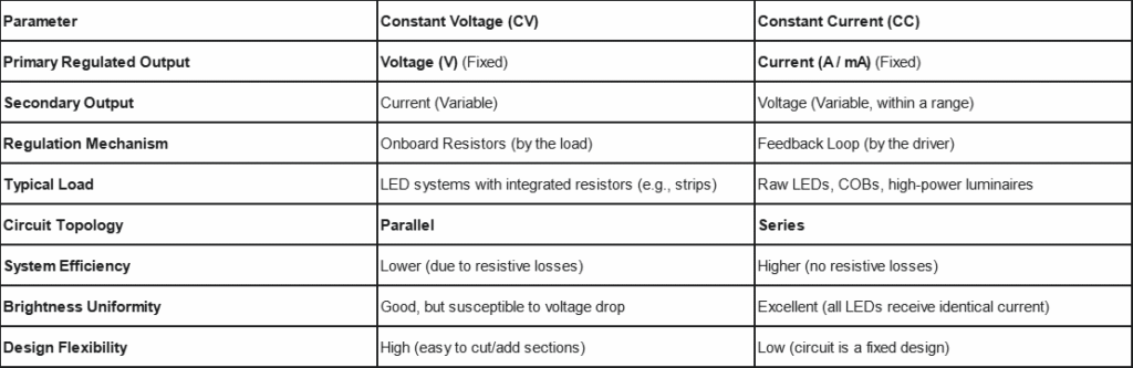 As an LED fixture manufacturer, you know that performance and reliability are key to your success. One of the most common mistakes we see in system design is confusing Constant Voltage (CV) and Constant Current (CC) LED drivers. This isn’t just a minor technical error—it can seriously impact the reliability of your products and your brand’s reputation.